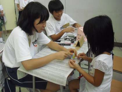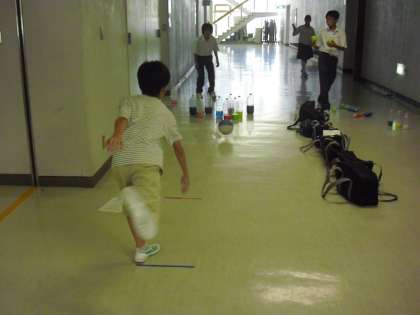 中学生のお店の様子です。ゼスチャー当てクイズ、ボーリングなどのお店が並んでいます。昨年度の卒業生もすっかり中学生らしくなりました。