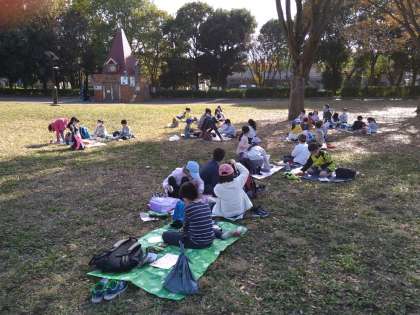 秋空のもと、2年生の遠足を行いました。お休みゼロの170名全員参加しました。交通ルールを守って、安全に公園まで歩きました。公園内では、みんなで楽しく遊びました。お昼には、美味しくお弁当をいただきました。遊びなどを通して、さらに仲良くなりました。