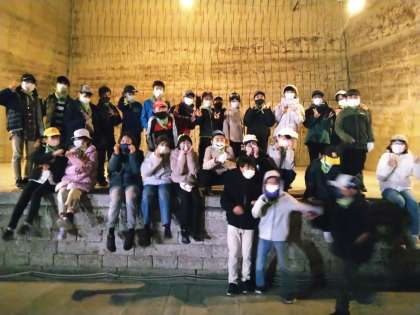 東武ワールドスクウェアで昼食をとり、その後バスで1時間乗り大谷資料館に行きました。大谷石を産出した跡を資料館にしたところで、内部は大聖堂のように声が響きわたります。気温も外気よりもさらに低く9℃で防寒着を着ていても寒く感じました。