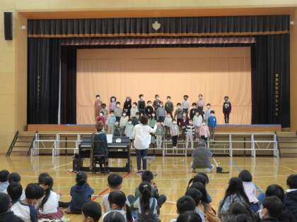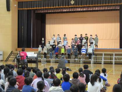 1、2,3年生は、元気いっぱいの歌声を、体育館いっぱいに響かせていました。