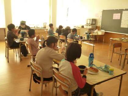 調理の手順を確認して、グループごとに友達と協力しながら調理をしました。