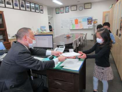 校長室での検定で、少し緊張している様子も見られましたが、すらすらと九九を唱えることができていました。