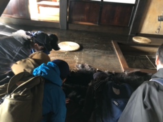 ?雨が降ってしまい、里山入門は外ではできませんでしたが、スライドを使って、川場村について自然や動物など様々なことについて学習しました。お話が終わった後は、少しだけ外に出て、古民家に行ったりふじやまビレジの周りを歩いたりしました。古民家では、熊の毛皮や鹿の角を触ることができ、貴重な経験となりました。