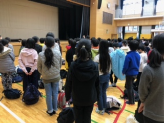 5年生が川場移動教室から無事に帰ってきました。たくさんの保護者の方や先生方が向かい入れてくださり、温かい雰囲気での帰校式となりました。この川場移動教室で、様々な経験をし、出発する時よりも顔つきや姿勢が大人になっていました。代表児童の言葉からも、この2日間がとても充実したものになったことが伝わってきました。今回の経験で身に付けたことは、この川場移動教室だけで終わりにするのではなく、今後の学習や行事にもつなげていってほしいです。