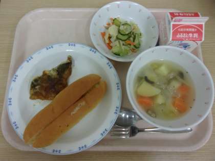 無塩パン(東京)、豚肉(北海道)、ベーコン(日本・デンマーク)、冷凍鶏ガラ(神奈川)、シイラ(長崎)、ツナ(静岡)、バター・シュレッドチーズ(北海道)、マッシュルーム水煮・りんご(山形)、パセリ・にんじん(千葉)、レモン(愛媛)、たまねぎ・じゃがいも(北海道)、キャベツ・セロリー(愛知)、きゅうり(宮崎)