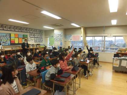 12月17日(金)1校時、5年1組の教室では、道徳「名前のない手紙」の学習が行われていました。