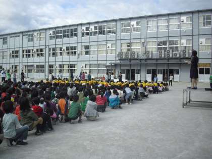 渡部校長から、6年生の水泳記録会の成績について紹介がありました。記録を紹介され名前を呼ばれた児童が立ち上がります。上位入賞だけでなく、自己記録を更新した人も紹介しました。最後は全員で6年生に拍手を送りました。