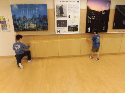 3mの紙テープで、3mのものさしを作り、物の長さを測りました。