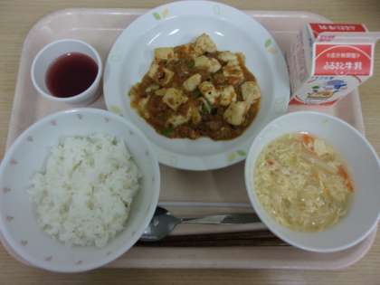 お酢の酸味と、唐辛子やこしょうの辛味が特徴の「サンラータン(酸辣湯)」。給食らしい程よい酸っぱさ・辛さに仕上げていることもあり、「芦花小の給食の中で、これが一番好き!」という声もいただきます。ふわっとした卵もまた、おいしさの秘訣かもしれません。