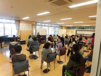 1月18日(火)6校時、音楽室では、6年1組の音楽「大切なもの」の学習が行われていました。