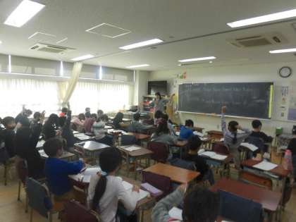 「小数のわり算」の学習において、わる数が二桁になるわり算に挑戦していた4年生。先生が提示する問題を意欲的に解いていました。どんどん問題を解いて、計算力を高めてくださいね。毎日、どうやって解くのかを考えていくことが、算数博士への道ですよ。がんばってください。