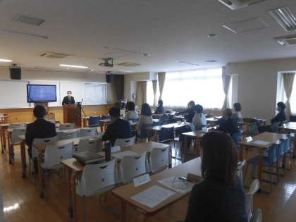 2月2日(水)放課後、芦花中学校の視聴覚室では、芦花小学校と中学校の小中合同学校協議会が行われていました。協議会は、学校協議会委員、PTA役員、小中の先生方が参加しました。