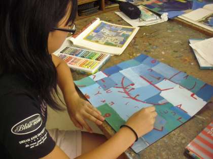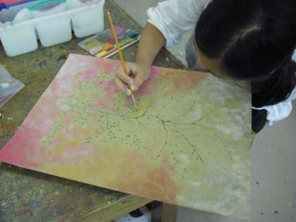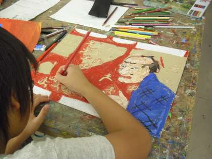 6年生の図画工作の授業の様子です。「芸術家の心にふれて」の制作にとり組んでいます。芸術家の名画に自分なりの一工夫を加えていきます。自分なりの思いをのびのびと表現しています。