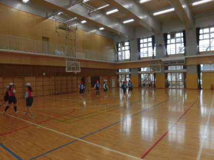 2月4日(金)5校時、体育館では6年1組がバスケットボールの学習を行っていました。