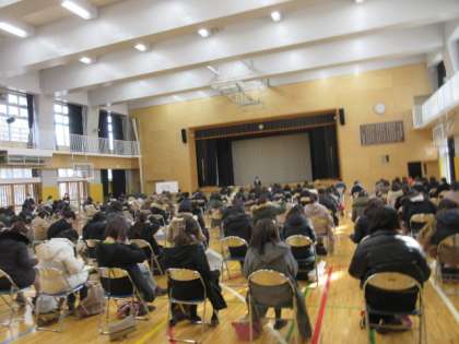2月14日(月)の午後2時30分から、体育館において新1年生保護者説明会を行いました。校長先生の挨拶・学校紹介のあと、次第にそって入学に向けての説明をさせていただきました。