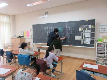 今日は、「年」の漢字を学習しました。「年賀状に年が使われている!」とすぐに気づいて発表していました。
