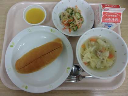 本日はB時程のため、給食はいつもより10分早く出します。久しぶりとあって、給食室内は朝から気が競ってそわそわしていましたが、難なく定刻通りに給食を出すことができました。