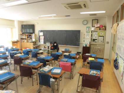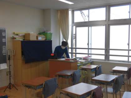 子供たちがいない教室でさびしさを感じますが、先生たちも頑張っています。
