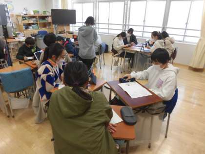 2月17日(木)6校時、6年1組の教室では、総合的な学習の時間「未来に向かってジャンプ」の学習が行われていました。