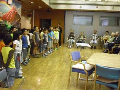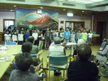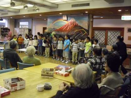 読み聞かせの後は歌を歌いました。「もみじ」の他数曲を、元気よく歌いました。芦花ホームの方々もとても喜んでくださいました。