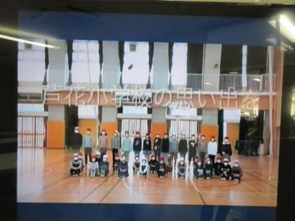 今日までに、1〜5年生、ひかり学級が、6年生に感謝の気持ちを伝えるために、それぞれ出し物を考えてきました。ビデオ上映となりましたが、子供たちみんなで作り上げた出し物は、それぞれ工夫されていて感動あるものでした。