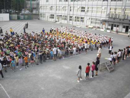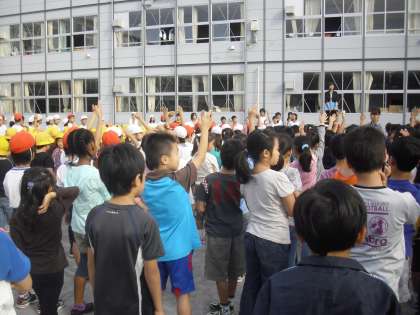 今朝の全校朝会の様子です。渡部校長の1つ目の話は、昨日行われたロカボロまつりについてでした。お店を運営した人や参加した人を尋ねたことに子どもたちが手を挙げて応えているところです。多くの人とかかわりながら活動できた一日でした。
