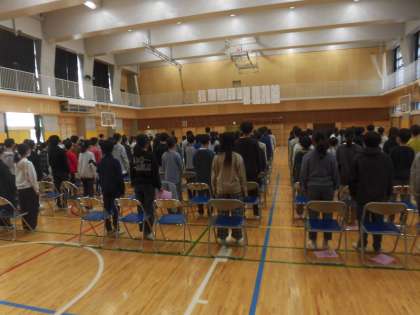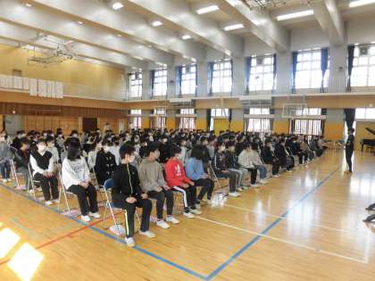 3月11日(金)5・6校時、体育館では、6年生の卒業式練習が行われていました。