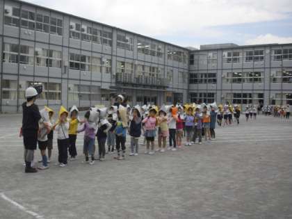 今朝行った避難訓練の様子です。今回は、授業中の理科室から出火し、避難を要すという想定でした。煙を吸わないようにハンカチを口に当てて避難します。学年によっては、非常サイレン時の態度、避難中や避難後の態度に課題があるところもあります。いつでも真剣な気持ちで訓練に臨むことができるようにしていきます。