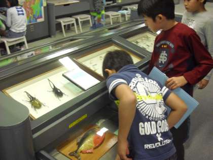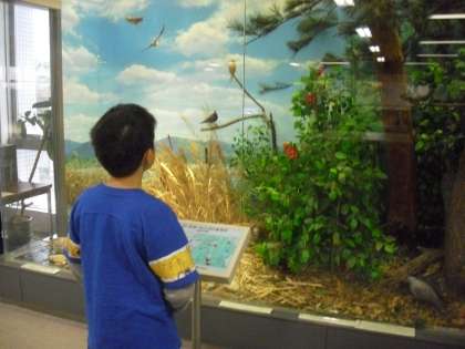 次は、「生物」のコーナーです。ここでは動物、植物、虫、野鳥、魚、環境保護につて調べることができます。世田谷の野鳥を集めたバードカービングジオラマやこん虫等の標本が間近で見ることができます。