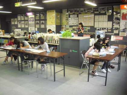 最後は「公共施設」のコーナーです。ここでは行政、文化、教育、警察、消防、水道、清掃、電気・ガス、公園を調べることができます。子どもたちは、とても熱心に郷土学習室の機能を活用しながら自分の課題に取り組みました。あっという間に時間が経ちました。