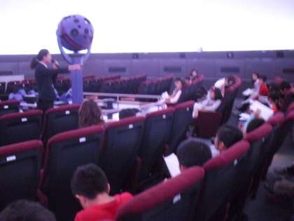 後半は、1階のプラネタリウムに移動です。4年生では月や星の動きや明るさ等を学習します。世田谷区立教育会館のプラネタリウムは最新の装置が入っています。室内も新しくリニューアルされたのでとてもきれいです。座席もゆったりとしています。