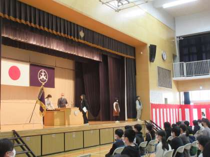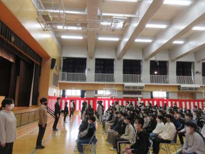 3月23日(水)5・6校時、体育館では、6年生の卒業式のリハーサルが行われていました。