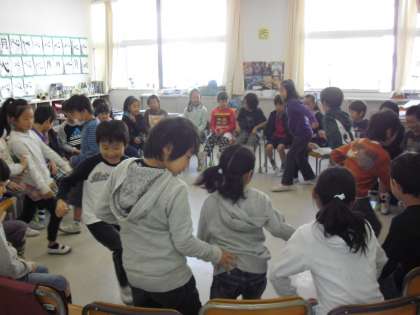 1・3・5年生は室内遊びです。それぞれ工夫して遊んでいます。2年生以上は、どのクラスも係の仕事として子どもたちが自主的に進めています。