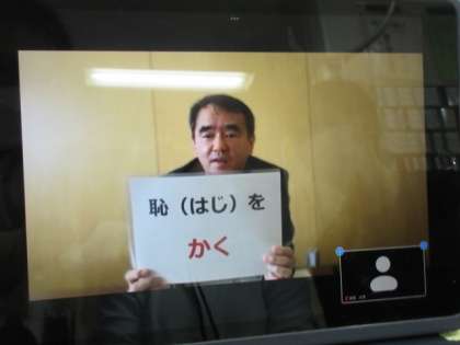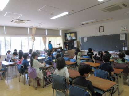 今回は、オンライン配信で行われ、小学校と中学校の各教室から配信を見ました。