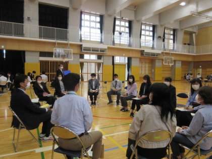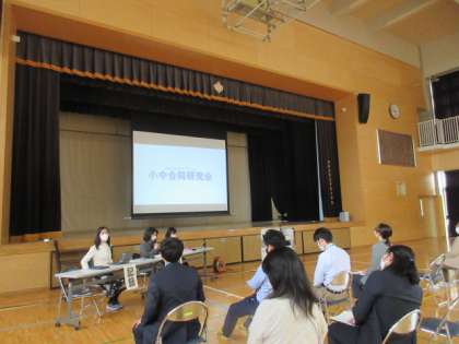 4月27日(水)放課後、小学校体育館にて、今年度1回目の小中合同研究会が行われていました。