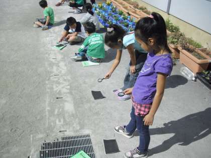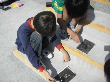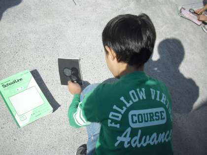 3年生の理科の授業の様子です。光の性質について学習しているところです。今日は虫めがねと黒い紙を使っての実験です。光を一点に集めると・・・煙が。子どもたちは驚いていました。体験的な活動を通して、日光の光は集めることができる、明るさや温度も変わることを学んでいきます。
