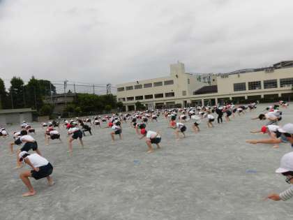 今日が初めてにもかかわらず、先生たちの話を理解して動きを覚えようと、一生懸命頑張る姿が見られました。小学校生活最後の運動会に向けて、どのようなソーラン節になるか楽しみです。