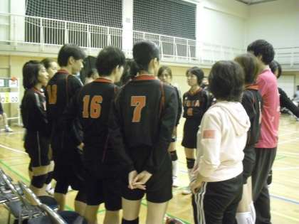 ベスト4に勝ち上がり、次の対戦は上北沢です。この試合も第1セットは奪われましたが、第2セットを奪い返し、第3セットへ。1点を争う緊迫したゲームに会場も盛り上がりました。最後は、わずかな差で敗れはしましたが、両チームに大きな拍手が送られました。粘り強くプレーした芦花のチームワークがより一層深まりました。