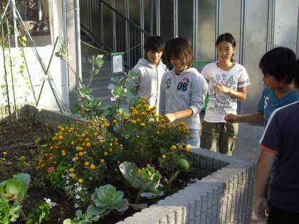 飼育栽培委員会の様子です。校庭のプランターやBOPの花だんなどの手入れをしました。雑草やかれている部分を取り除いたり、水をあげたりしました。