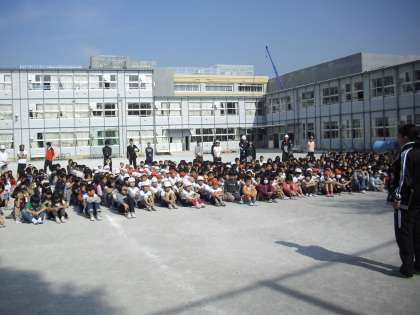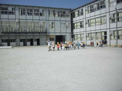 避難訓練の様子です。地震発生後、家庭科室から出火という想定で行いました。避難時間は4分5秒です。前回よりも約20秒ほど短縮できました。訓練は真剣に行うことが大切です。「おかしも」をしっかり守って取り組むことができました。