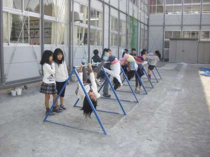 休み時間の様子です。鉄棒で遊ぶ子どもたち。逆上がりや前回りなど授業で取り組んだ技で遊んでいます。来週から始まる「なわとび月間」を前に、短なわ跳びで遊ぶ子どもたちも多くなってきました。気持ちのよい天気です。