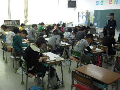 本日行った学校運営委員会の漢字検定実行委員会にる第2回漢字検定の様子です。準2級から10級までの検定に2名の大人を含む51名が参加しました。子どもたちは集中して問題に取り組んでいました。第3回目の検定は3学期に予定しています。