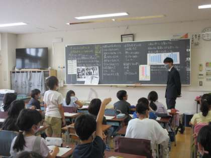 6月3日(金)1校時、4年5組の教室では、社会科「住みよいくらしをつくる『水はどこから』」の学習が行われていました。