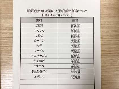 今日は、きんぴらトースト、アスパラガスのサラダ、小松菜のクリームスープ、牛乳です。