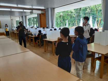 お昼ごはんを食べました。いつもと違う環境で食べるごはんで、みんな美味しそうに食べていました。