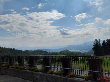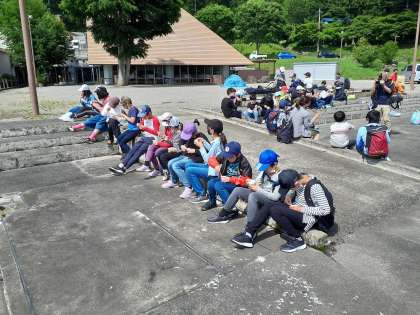 天気がよかったので、おやつのアイスは外で食べました。景色もとてもきれいです。