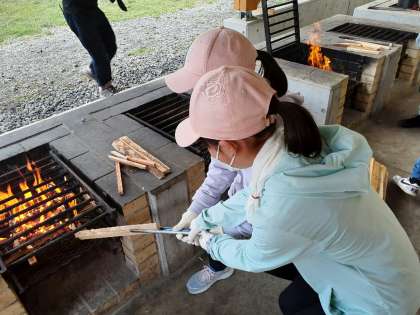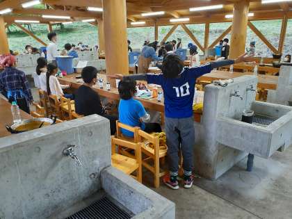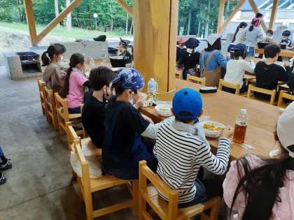 お米、カレー、かまど、班の全員が協力して一つのカレーが完成しました。