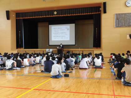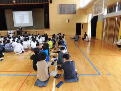 6月13日(日)1校時、体育館では、6年生のネットリテラシー醸成講座が行われていました。