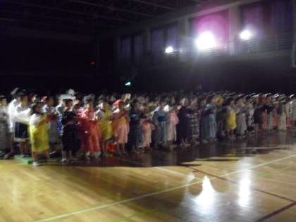 学芸会の初日を迎えました。今日は児童観賞日です。2年生児童がオープニングを盛り上げてくれました。続いて全員合唱「幕を開ける歌」です。全員で気持ちを一つにして歌います。手拍子も合わせます。子どもたちが楽しみにしていた学芸会の開演です。