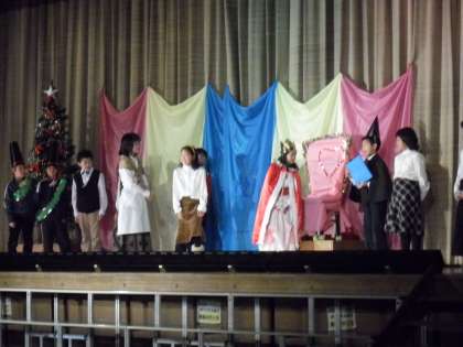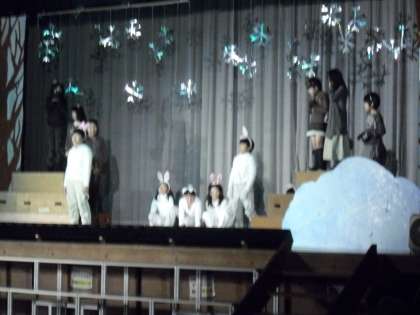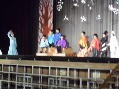 4年生の「森は生きている」です。保護者観賞日は、プログラム順に、最前列のマットの座席に座っていただきました。間近で見ることができます。会場の雰囲気も前日の児童観賞日とは異なります。しかし、4年生は前日以上に張り切って、演技に力が入っていました。歌声ものびやかに響いていました。